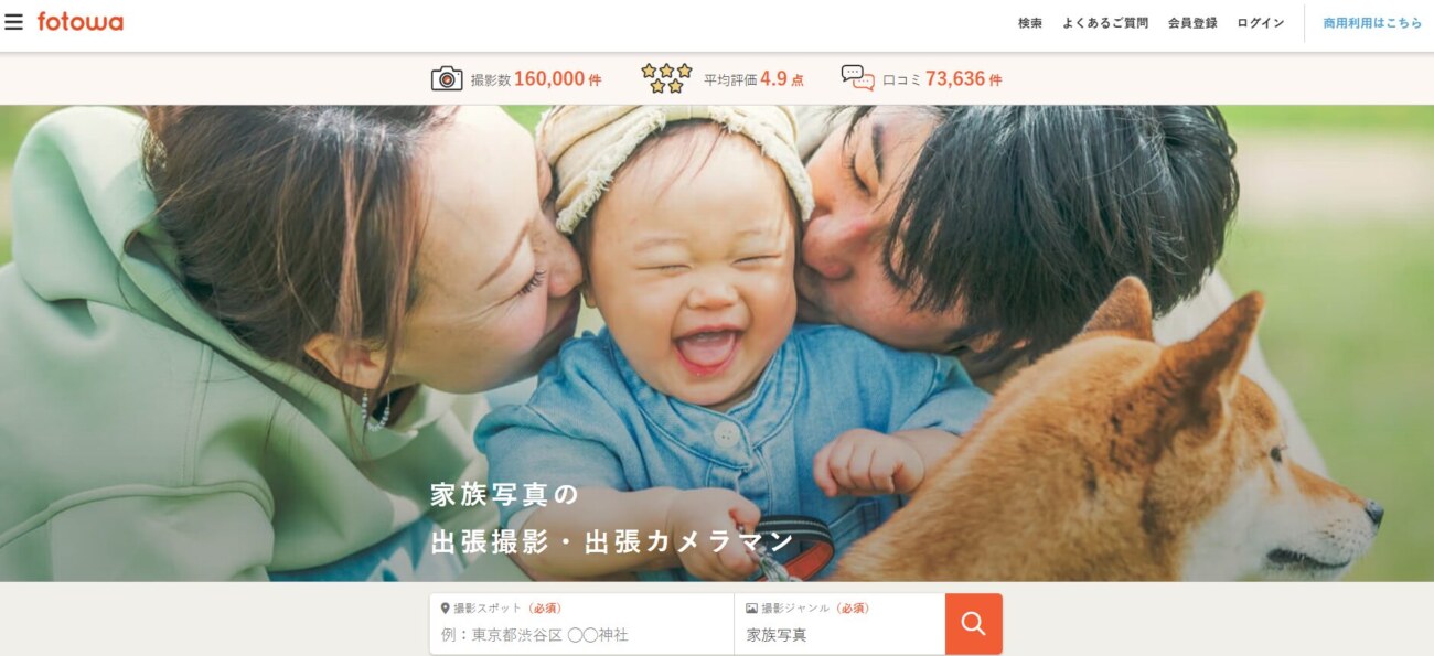 fotowaは、家族や子ども向けに特化した出張撮影サービスで、全国どこでもプロのフォトグラファーが自宅や好きな場所に来て撮影してくれます。