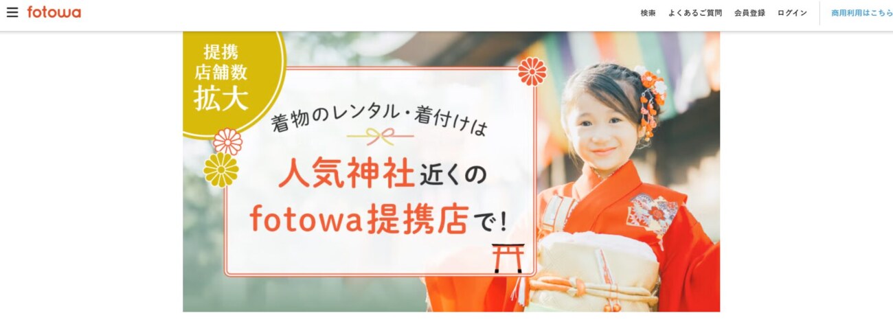 fotowaは直接レンタル衣装や着付けサービスを提供していませんが、全国の主要神社周辺にある信頼できる提携店を紹介しています。