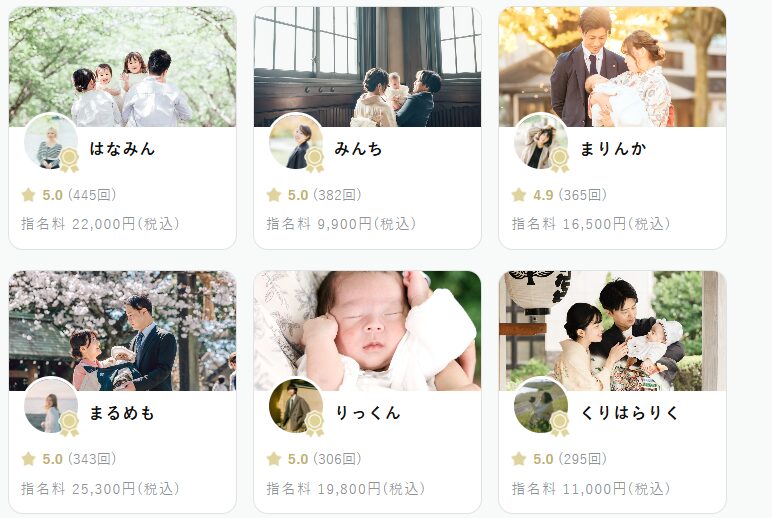 はい。一部のカメラマンでは指名料がかかります。予約段階で指名料金が表示されるのでそちらを参考にしましょう。