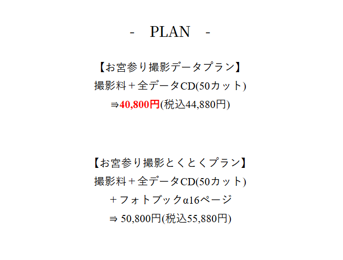 | 【七五三】キャンペーン(10/31まで) | ![]() |