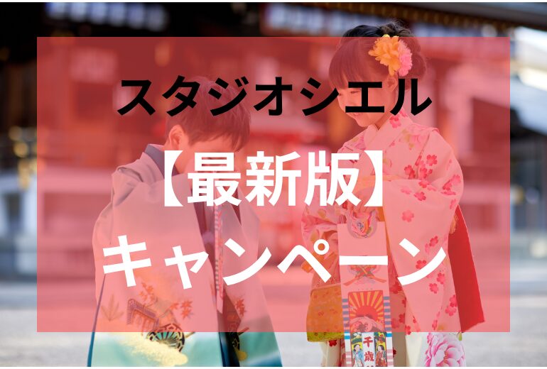 最新キャンペーンについては【最新版】スタジオシエルキャンペーン・割引・クーポンまとめ。安くお得に撮影したい!★毎月更新★で詳しく紹介しています。お得になるキャンペーンが多いので、予約前に確認しておきましょう!
