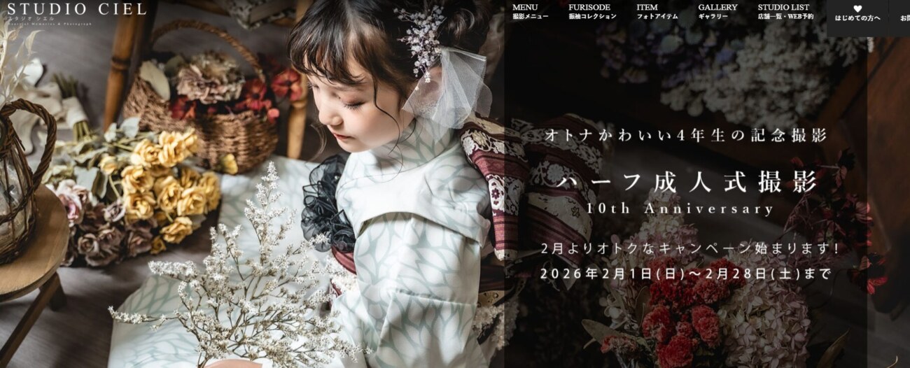 現在スタジオシエルではおトクな【ハーフ成人式撮影】キャンペーンを実施中です。