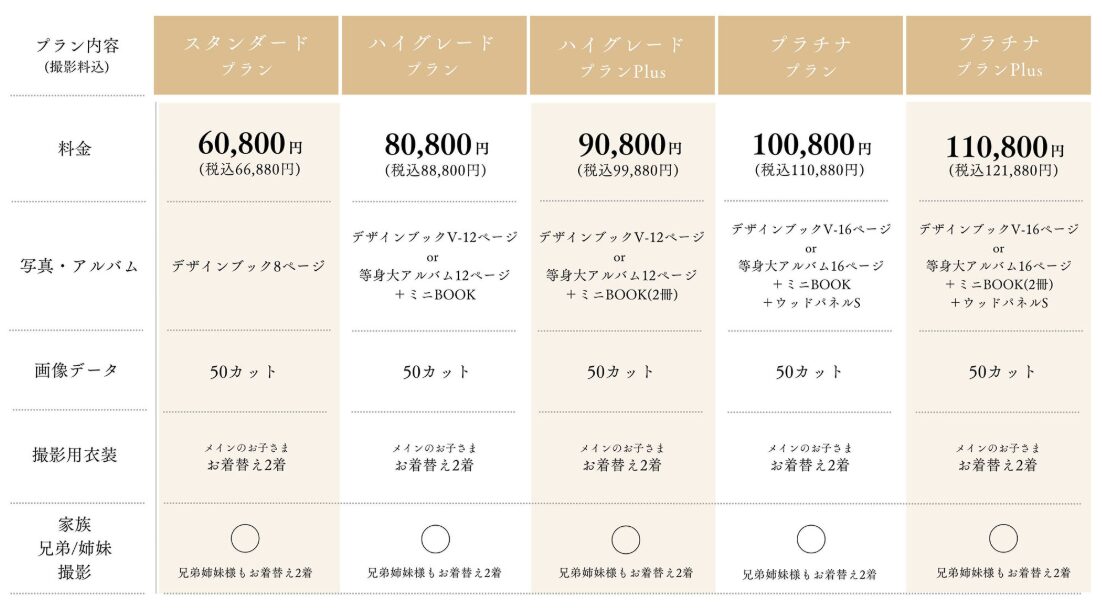 撮影プランにより多少の料金変動がありますが、詳細な価格やキャンペーン情報は公式サイトで最新情報をご確認いただくことをおすすめします。