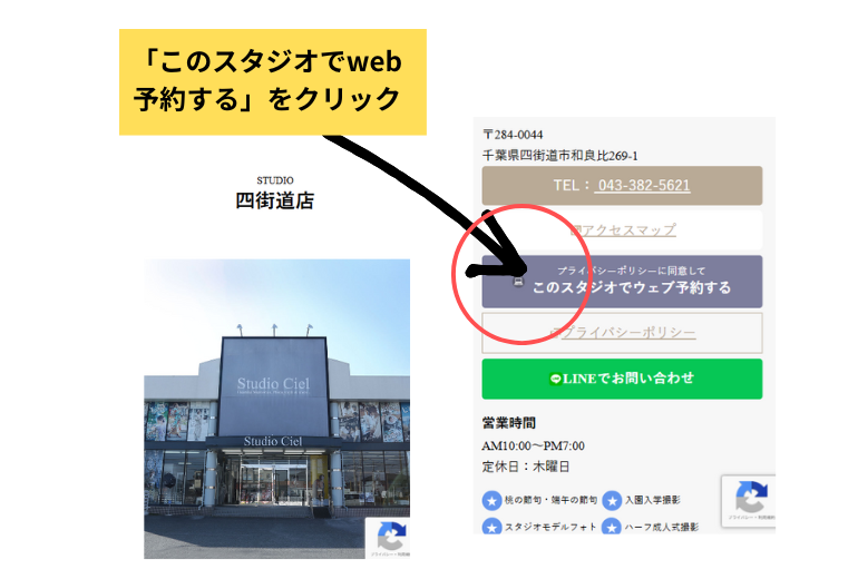 店舗ページへ飛ぶので「このスタジオでweb予約する」をクリック